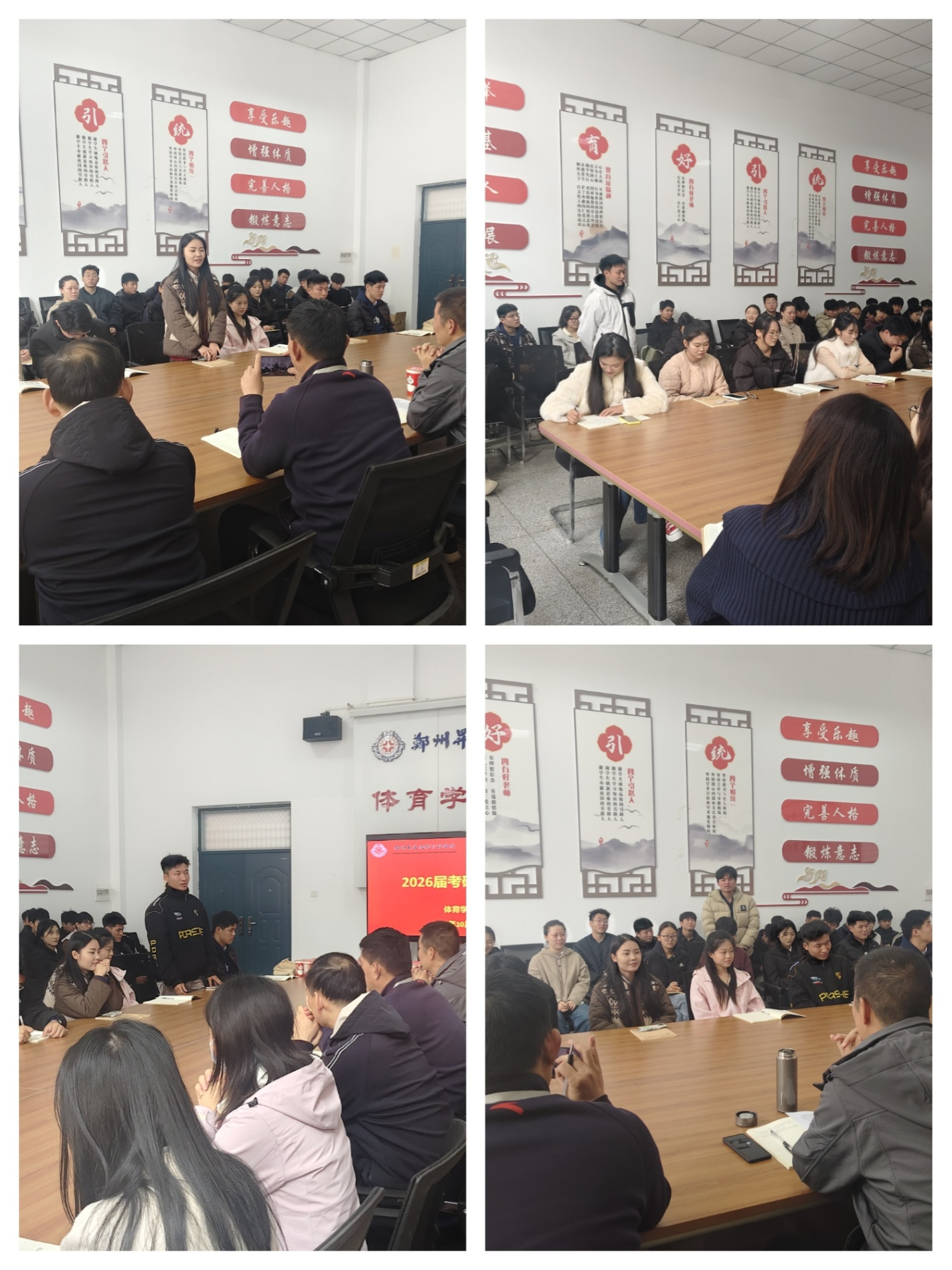 接下来,正在积极备考的学生代表分享经验。他们结合自身复习进度,从“如何选择目标院校”“公共课与专业课复习节奏把控”“如何克服备考倦怠期”等方面展开交流,用真实的备考故事、可复制的学习方法,让在场学生感受到“身边人的力量”。其中一名学生代表提到:“体育生最擅长的就是坚持,把训练时的韧劲用到备考中,一定能看到结果。”朴实的话语引发全场共鸣,进一步激发了学生的备考热情。