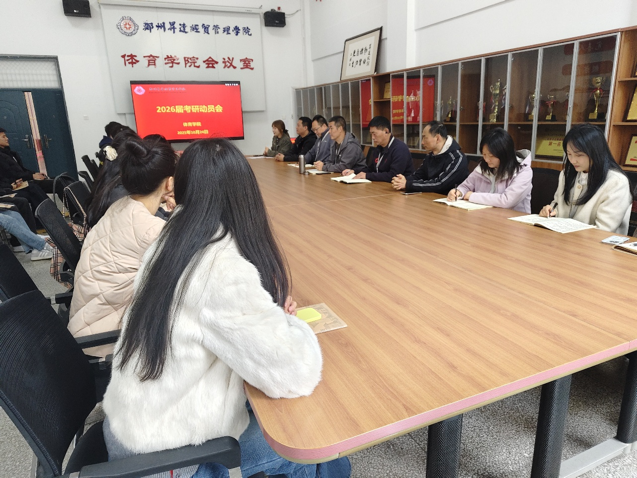 为切实帮助考研学生明确备考方向、坚定升学信心,10月24日上午,体育学院于体育馆会议室召开考研动员大会。学院党委书记韩炎涛、院长张王利、党委副书记高建涛、社体教研室主任李英豪、体舞教研室主任栗元辉、全体辅导员及大四全体报名研究生考试的学生共同参会,为即将踏上考研征程的学子注入“强心剂”。