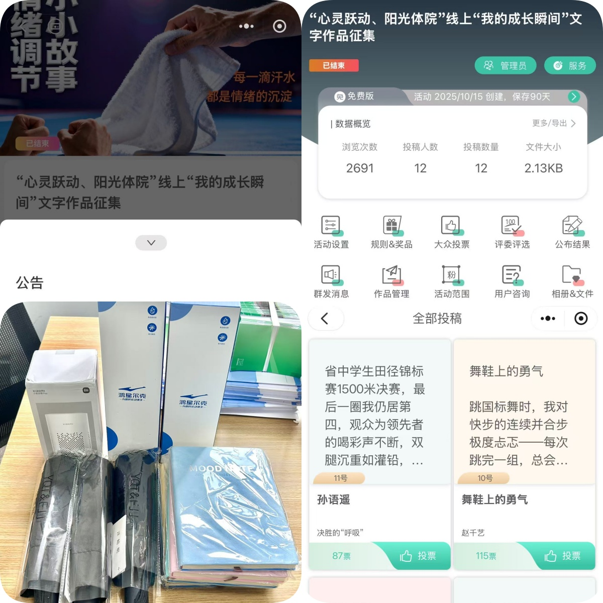 活动核心环节——线上“我的成长瞬间”作品征集,于10月16日正式开展至20日结束。同学们围绕体育生常见的训练瓶颈突破、比赛压力调节等场景,分享300字内的真实心理调节故事,共收到12份高质量投稿。其中,22级田径专业李同学“用晨跑时的脚步声驱散焦虑”、25级舞蹈专业乔同学“通过复盘比赛视频平复失利情绪”等内容,生动展现了体育生直面压力、积极自我疏导的精神风貌,也为其他同学提供了可借鉴的心理调节思路。