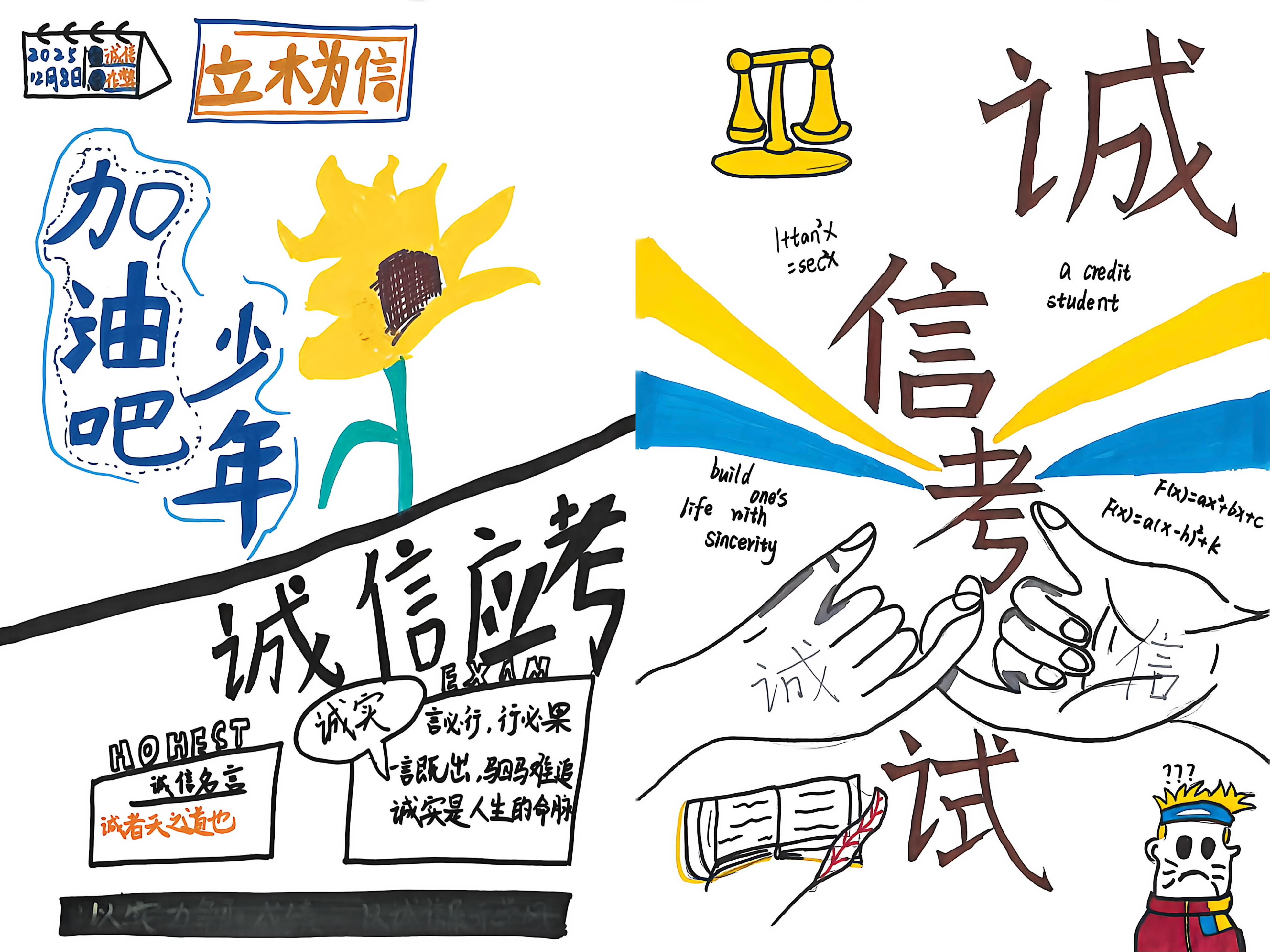 活动伊始,学院通过线上线下相结合的方式发布活动通知,明确手抄报创作需紧扣“学风建设”与“诚信应考”两大核心主题。同学们踊跃报名,围绕主题展开创作。在构思与绘制过程中,大家充分发挥专业特色,将运动精神与诚信理念相融合,用鲜明的标语和生动的漫画传递诚信应考的重要意义,有的则结合校规校纪,梳理考试作弊的危害与后果。一张张手抄报版面设计新颖、内容丰富,不仅展现出同学们扎实的绘画功底,更彰显出大家对诚信考试的坚定态度。