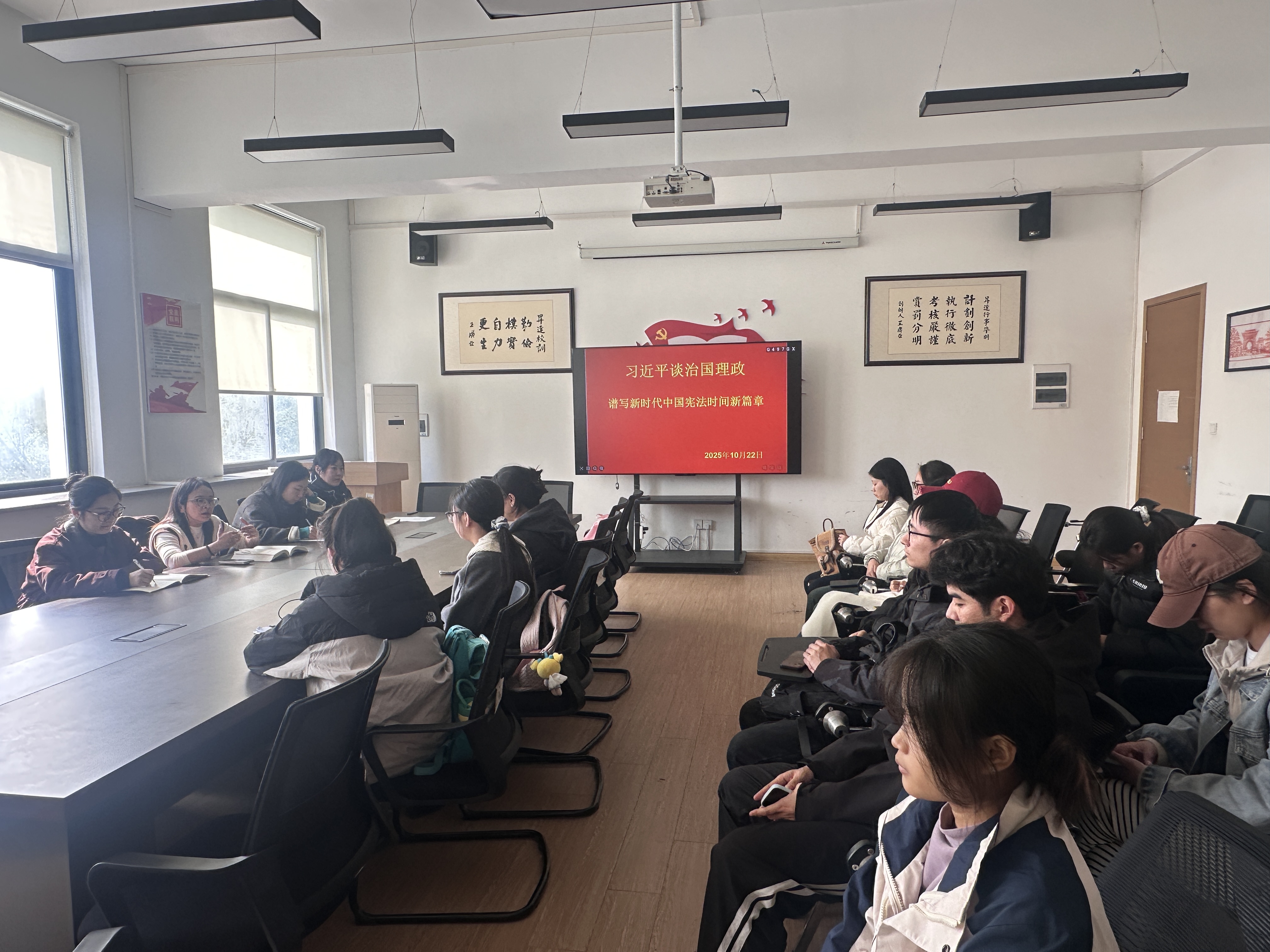 2025年10月20日,文法学院学前教育专业学生第一党支部组织开展了《习近平谈治国理政》第五卷 “谱写新时代中国宪法实践新篇章” 的专题学习活动,支部全体党员参加学习。