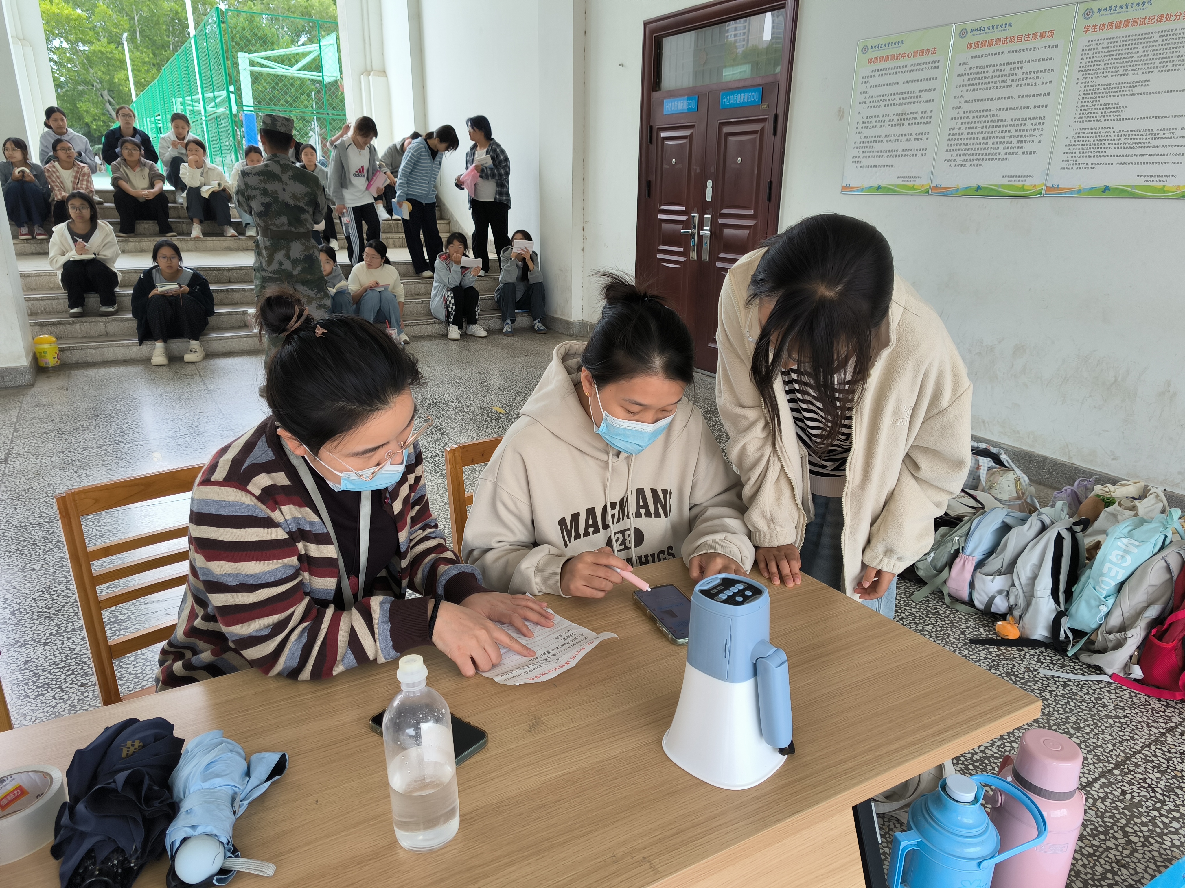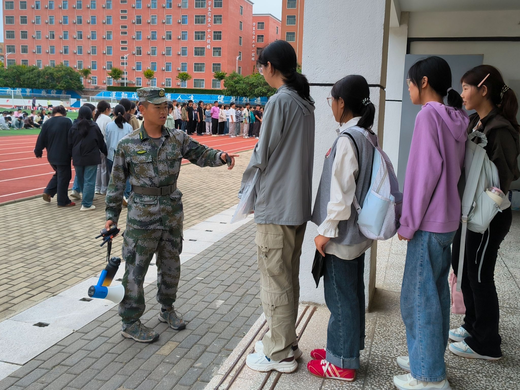 秋风送爽,云淡风轻,训练场上的同学们精神抖擞、意志如钢,展现出青春的昂扬姿态。与此同时,在训练场外的军训值班区,志愿者们全程坚守,如同训练场上的一道安心屏障。他们严格遵循值班安排,每天准时到岗服务同学,将关怀融入每一个细节之中,成为莘莘学子军训时光里最坚实的后盾。在负责人的协调下,文法学院服务台也提前准备了纸巾、创可贴等应急物品,志愿者们有序开展“爱心补给”服务并时刻保持警觉,站好“保障岗”,以防突发情况发生。值班人员也常常利用间隙时间与参训同学交流谈心,聆听他们的军训故事,舒缓他们的紧张情绪,用实际行动传递着“你安心训练,我默默守护”的陪伴理念。活动结束后,值班人员主动清理场地周边杂物,维持训练环境整洁,体现了良好的集体意识与责任担当。