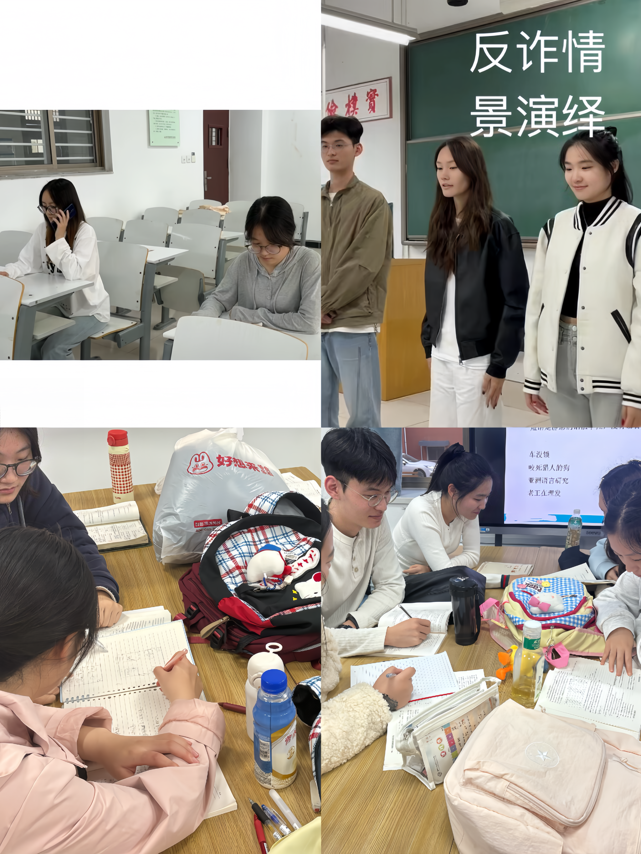 活动紧扣汉语言文学专业特色,首先由团支部书记讲述了有关“论文发表”“文字兼职”等语言专业高频诈骗案例,播放民警反诈讲座培训内容,重点学习虚假信息识别、个人信息保护、转账核实等实用方法,让同学们直观掌握识破诈骗的技巧。其次,活动通过知识竞赛和情景模拟开展反诈知识普及和实践演练,有效提升同学们对骗局的识别度和实践应用能力。活动最后,全体同学签署《青春反诈承诺书》,并倡议同学们发挥专业所长创作反诈推文、诗歌等文学作品,传播反诈知识。