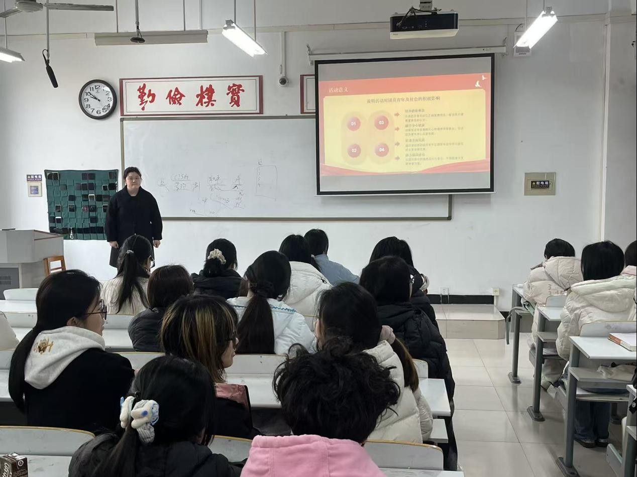 活动伊始,团支部书记围绕活动指导思想、教育方针与根本任务展开讲解,结合健康中国建设要求,重点阐释体质提升、心理调节、视力保护、体重管理四大核心内容,引导同学们树立科学健康观念,鼓励大家主动参与体育锻炼、快乐成长。随后,岳佳莉针对同学们在日常学习生活中存在的健康意识不足、锻炼习惯欠缺、身心发展不协调等问题,明确具体改进方向,引导大家将健康理念融入日常点滴,以强健体魄与阳光心态面对学习和生活。