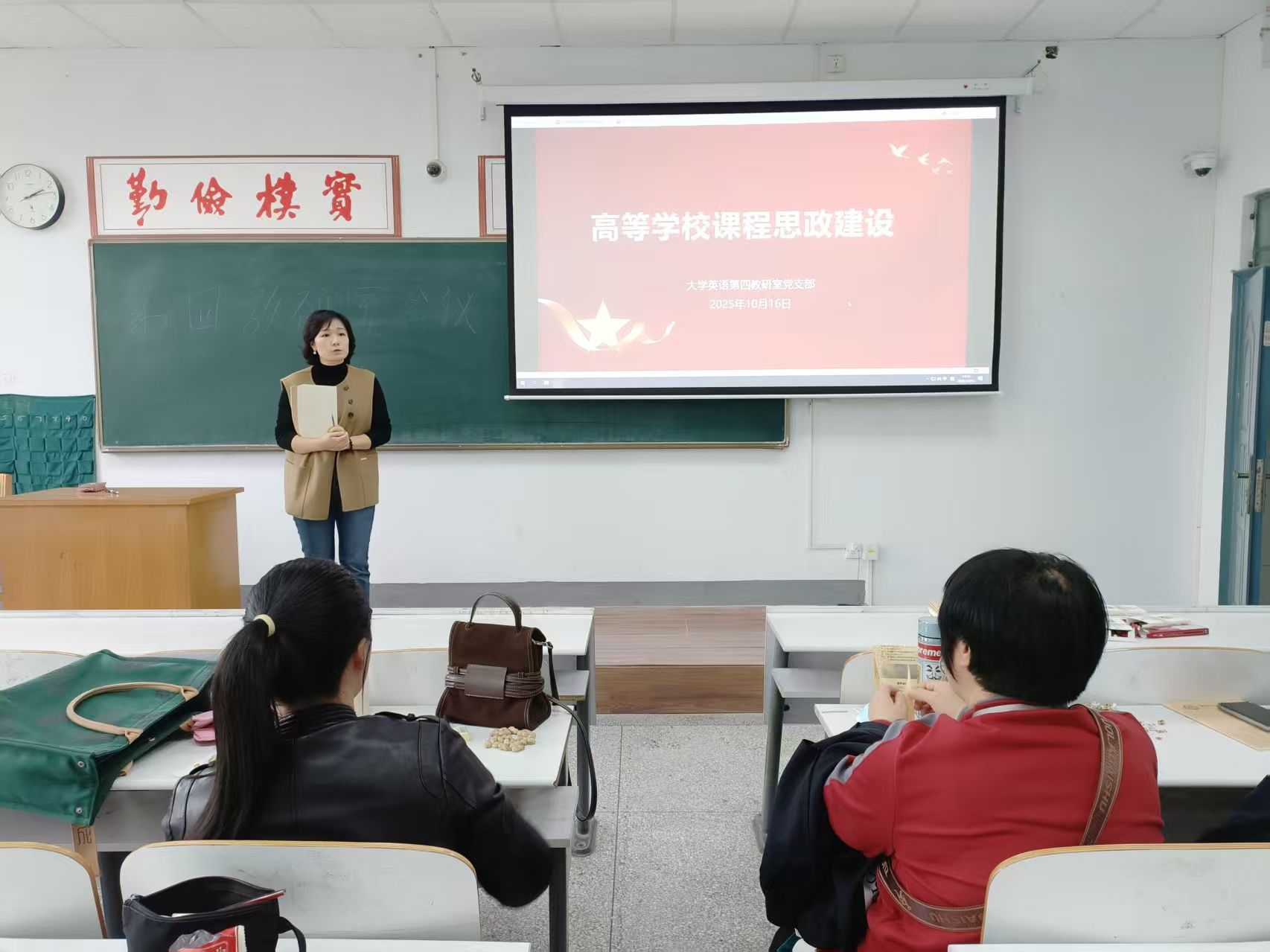10月16日下午,外国语学院大学英语第四教研室党支部在综合楼321教室召开政治学习会,组织全体党员教师深入学习了《高等学校课程思政建设指导纲要》,会议由党支部书记王晓静主持。