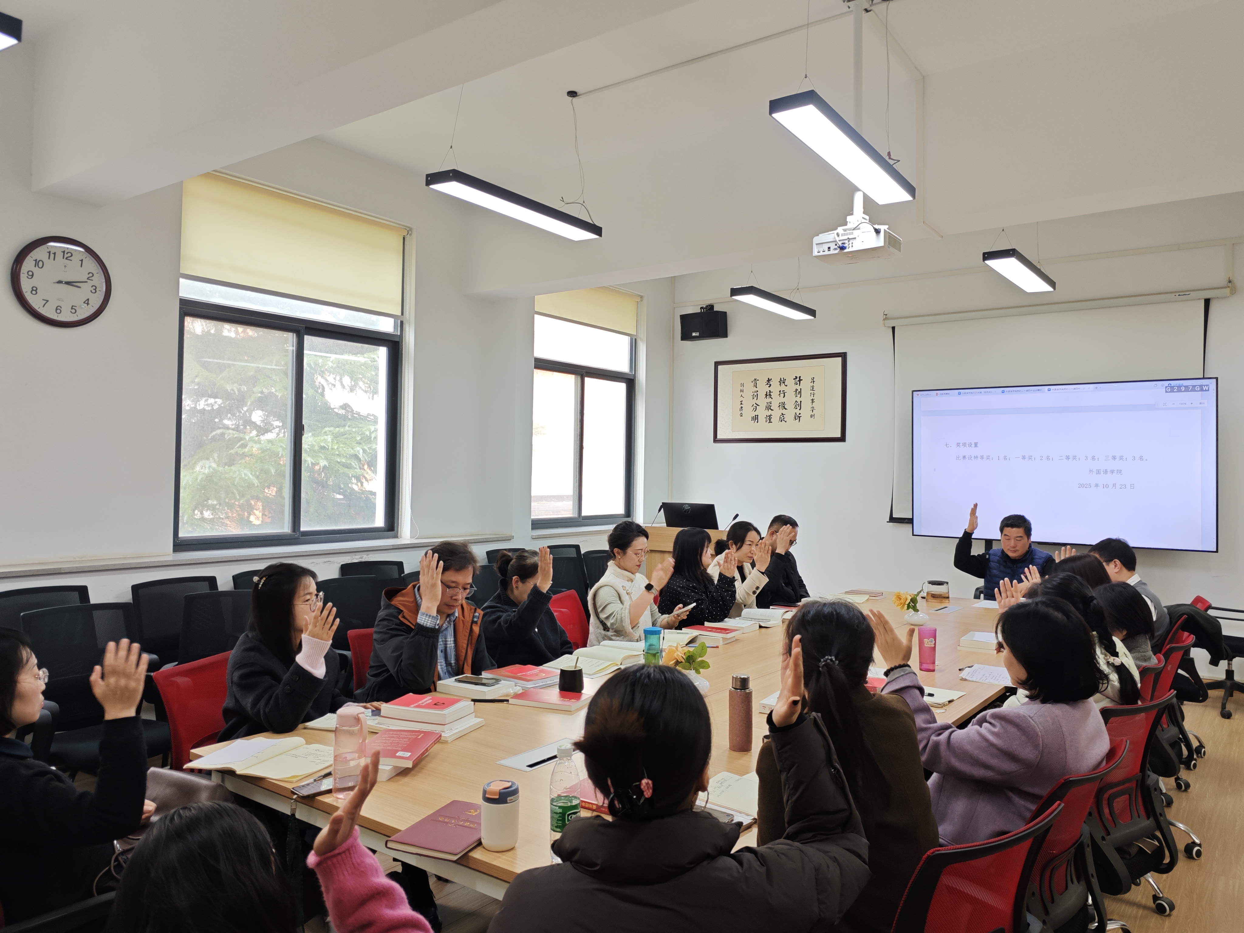 2025年10月23日,外国语学院在院206会议室召开党委会(扩大)会议,专题审议并部署下一阶段重点工作,会议由院党委书记石皓召同志主持,全体党委委员和各党支部书记参会。会上对下一阶段四项重点工作安排进行讨论并表决,均获全票通过。