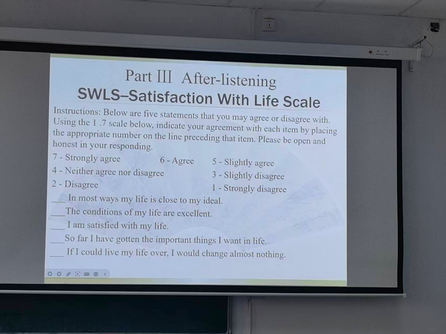 李尚芝老师亦围绕Unit3 Happiness进行讲解,李老师以“猜单词”的趣味方式导入——给出单词定义,让学生在理解句子的基础上猜出对应词汇,充分调动学生的参与热情。随后,她引导学生分享“能让人快乐的元素”,搭建起学生与知识的情感联结。听力环节,她让学生带着“丹麦人为何比较快乐”的问题去倾听、去总结,在第二遍听力播放结束后,进一步引导学生深入思考快乐的本质,让学生在自主探究中树立积极健康的幸福观。