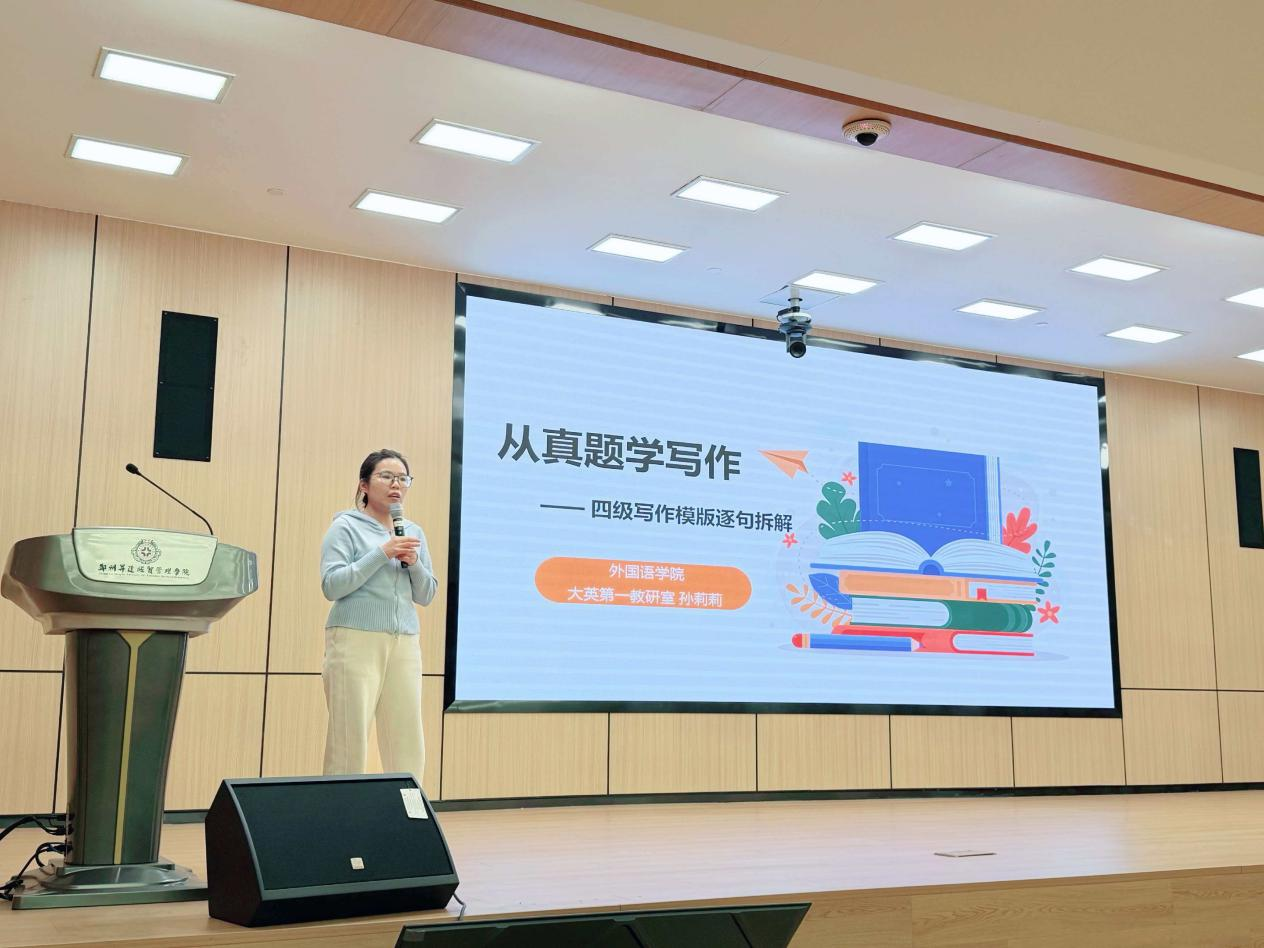 针对不同年级学生英语学习痛点,党支部整合优质师资资源,举办多场专题讲座。党员教师围绕“大学英语学习方法与能力提升”“四六级备考规划与技巧”等主题,通过真题解析、场景模拟、经验分享等形式,帮助学生明确学习方向、掌握科学方法,助力学生夯实英语学习基础。讲座现场互动热烈,党员教师耐心解答学生疑问,为学生搭建了高效的学习交流平台,获得广泛好评。