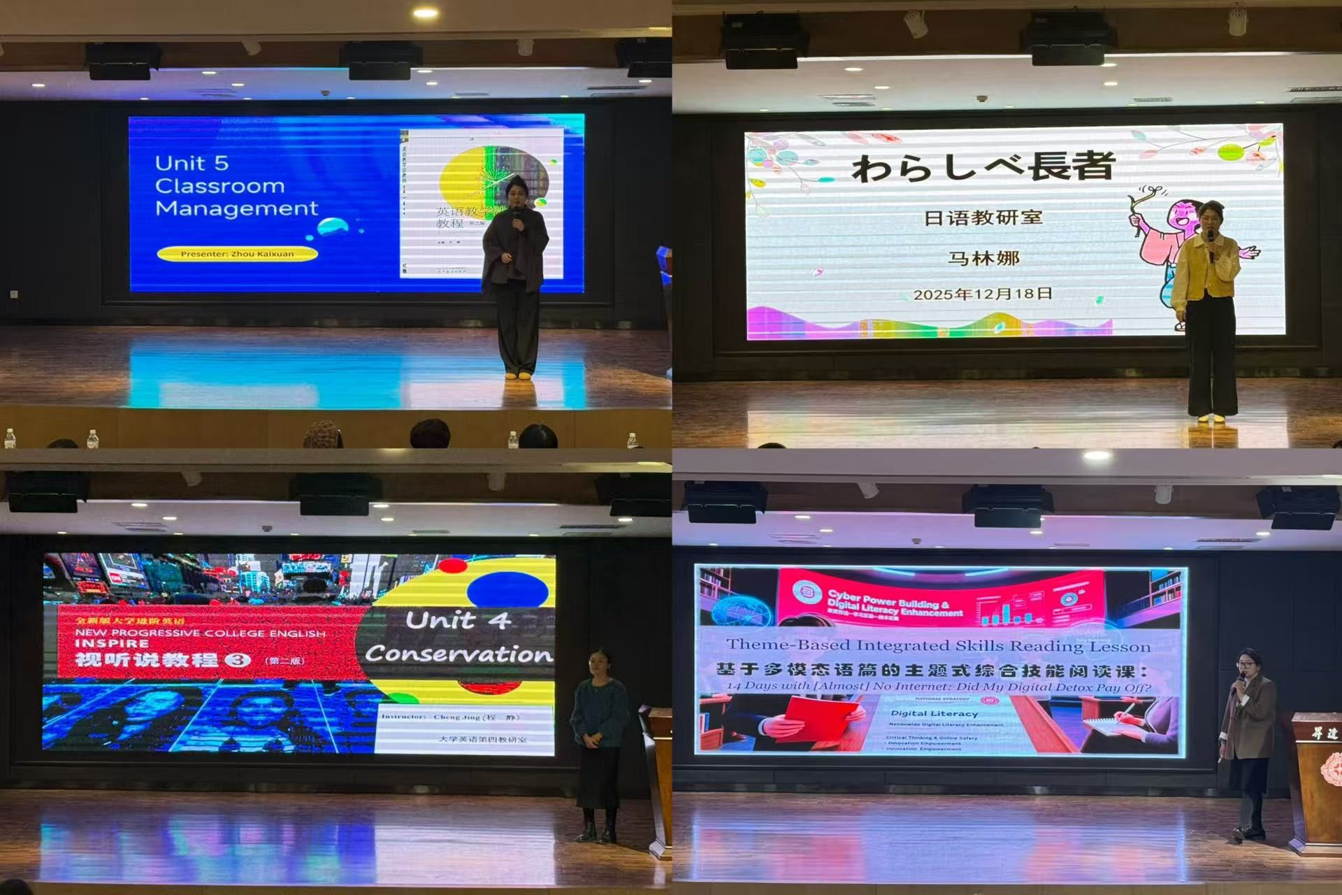 在正式比赛环节,参赛教师依次登台,围绕教学内容,有机融入党的二十届四中全会精神要点,开展说课与模拟授课。教师们教学思路清晰、教态自然,展现了良好的教学素养与课程思政融合能力,赢得了评审嘉宾和在场观众的一致好评。