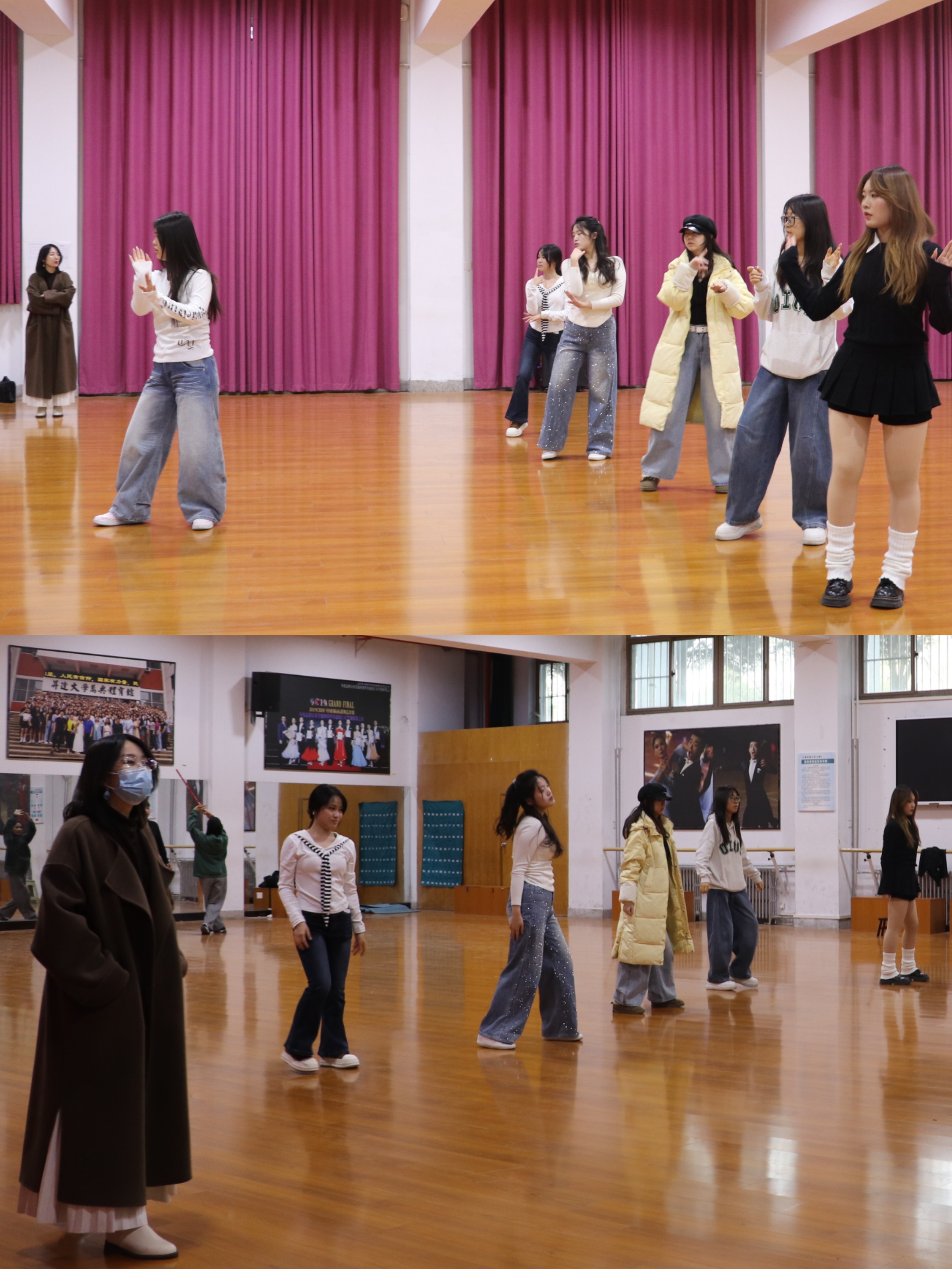 为备战明年外国语学院嘉年华,打造兼具青春活力与专业质感的舞台表演,外国语学院党委副书记兼团委书记丁玥老师于12月8日,和星光公社成员们于体育馆负一楼齐聚一堂,为社员们提供指导,助力团队打磨精品节目、展现外院风采。