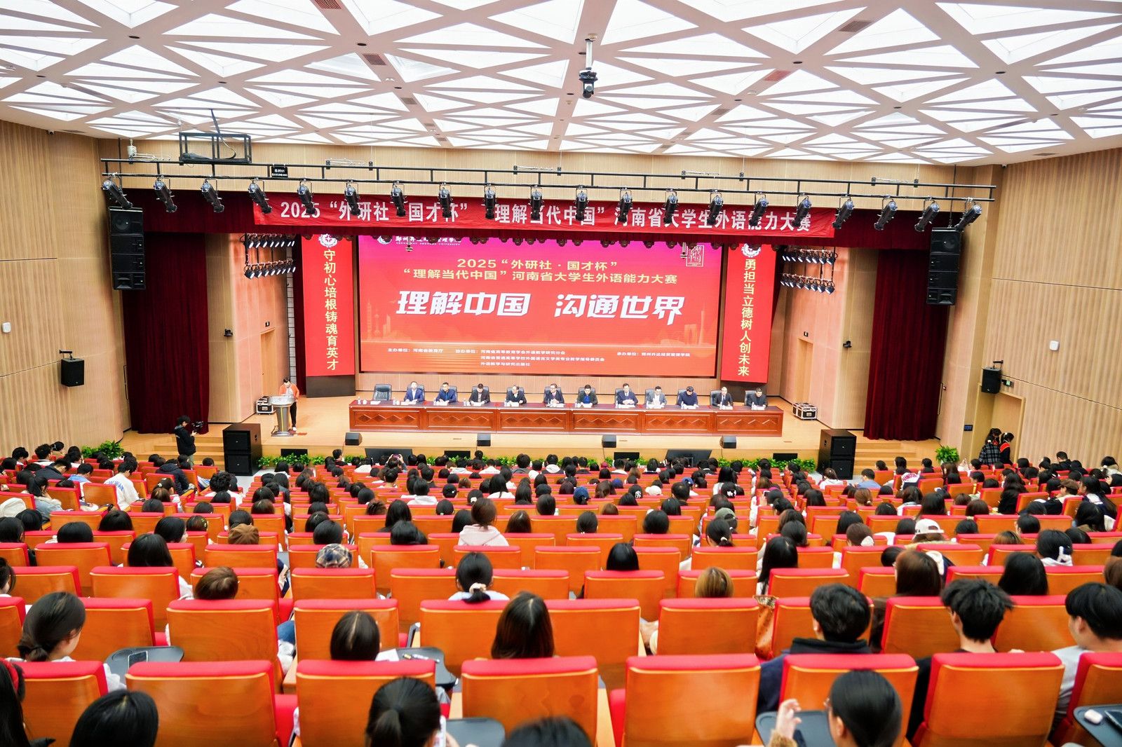 2025“外研社·国才杯”“理解当代中国”全国大学生外语能力大赛是以“理解中国,沟通世界”为主题,引导选手理解中国之路、中国之治、中国之理,涵养家国情怀、全球视野,拓展知识广度、思想深度,展现外语能力、跨文化能力、思辨能力、创新能力等综合素养。11月1日—2日我校承办该赛事河南赛区比赛。11月1日上午,大赛开幕式在我校新图书馆报告厅举行。开幕式由外国语学院院长王莉莉主持。