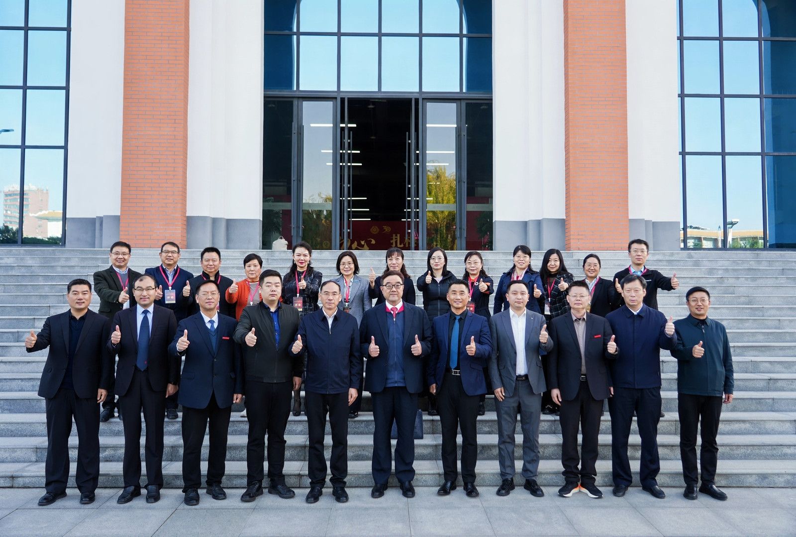 与会领导、嘉宾在新图书馆前合影留念。