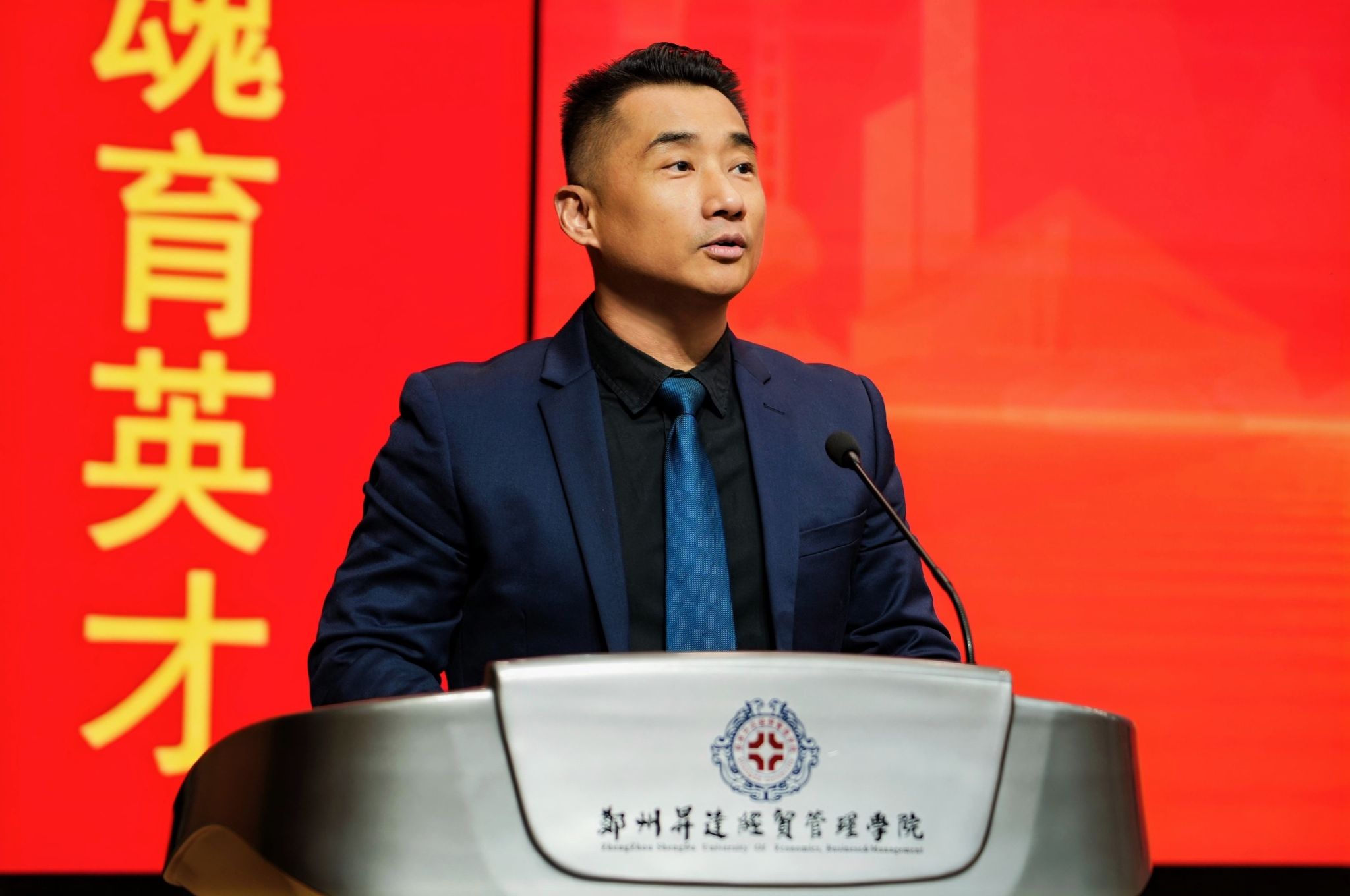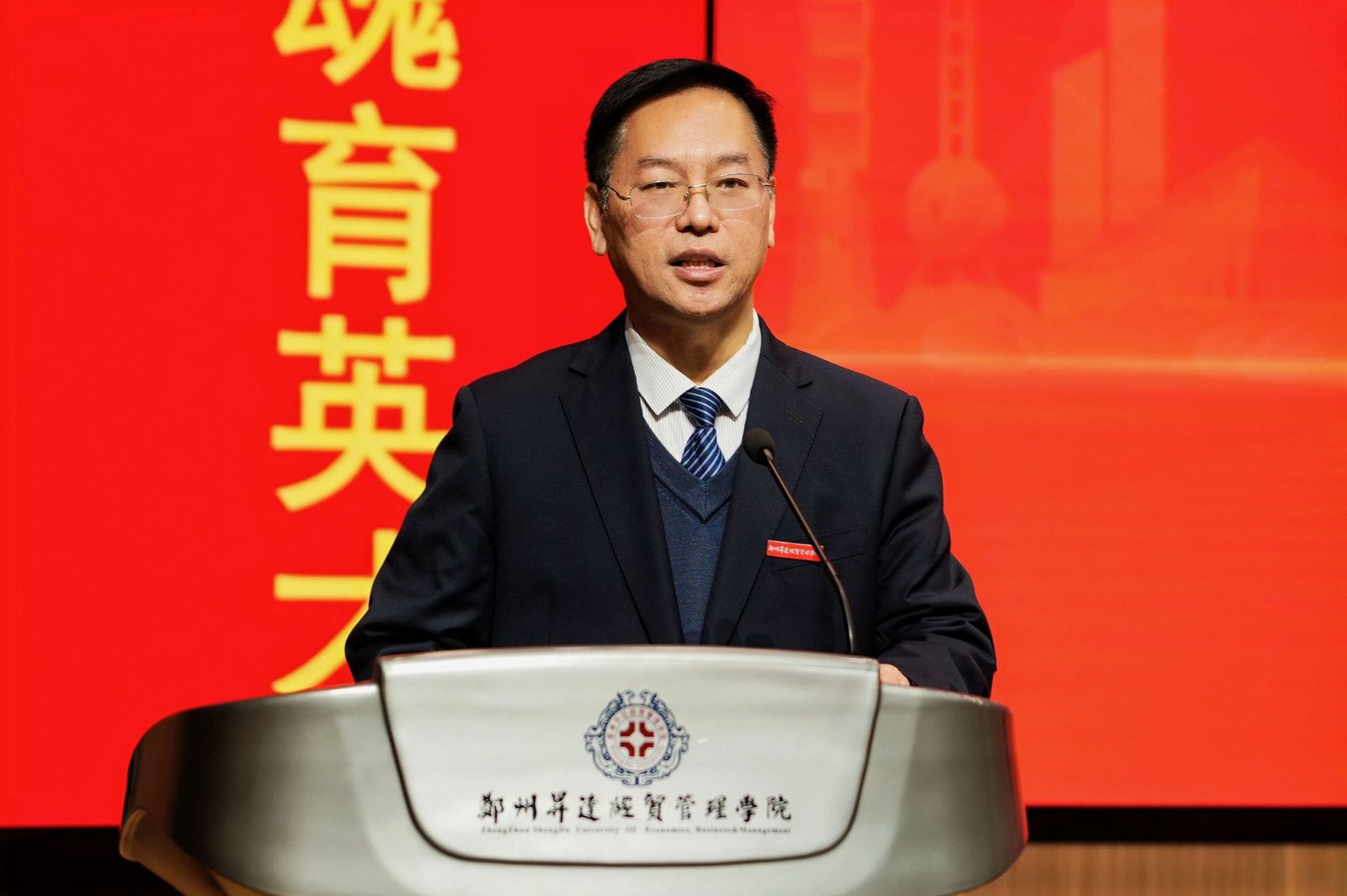 仪式伊始,张金安致欢迎辞。他代表我校全体师生向各位领导、评委、指导老师和参赛选手们表示热烈的欢迎和诚挚的问候。张金安介绍了我校创建历程、办学规模、专业设置、人才培养及办学三十二年来的发展成就。重点介绍了我校外国语学院的建院历史、专业设置和师资力量。他表示,我国正处于实现中华民族伟大复兴的关键时期,教育强国、文化强国建设深入推进,“一带一路”倡议持续深化,高水平对外开放不断扩大,对复合型外语人才的需求比以往任何时候都更加迫切。我们真诚希望能够以赛为媒、以语为桥,助力学子们用流利的英文阐释中华文化的当代价值,用精准的翻译呈现中原大地的创新实践,用语言解码当代中国,做中国故事的“传播者”、对外开放的“先行者”、终身学习的“追求者”。希望全体参赛选手以最佳的状态投入比赛,赛出风格、赛出水平、赛出风采!期待各位评委专家给予专业指导,助力青年学子成长进步!