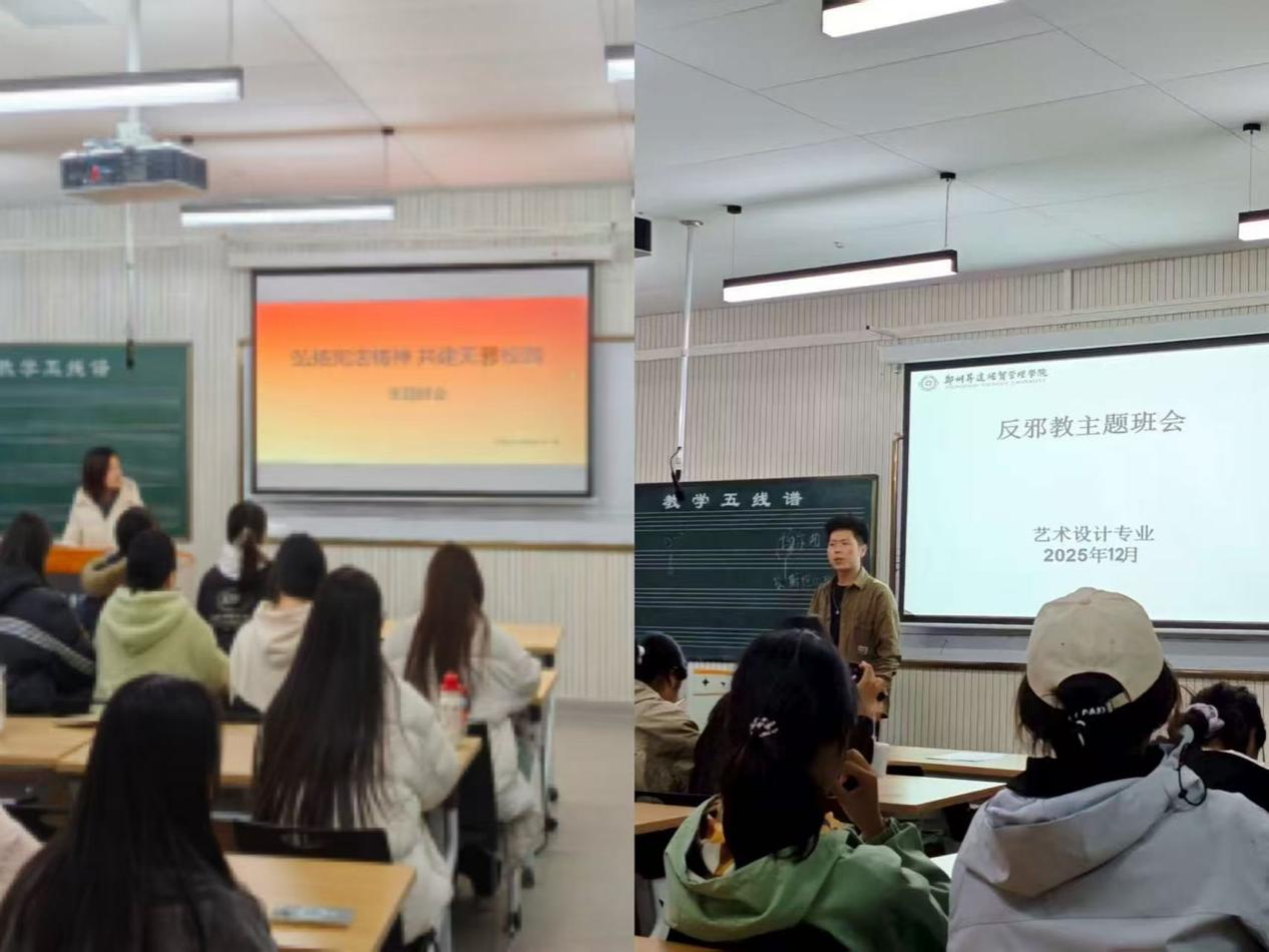与此同时,各班级积极组织开展主题班会。班会上,通过系统讲解反邪教知识,结合案例分析揭示邪教的危害本质;设置知识答题环节,围绕宪法法律法规及反邪教常识开展互动问答;组织观看反邪教警示教育片,以真实案例警示学生认清邪教危害。班会内容丰富、形式多样,有效提升了学生的法律素养和安全防范意识。