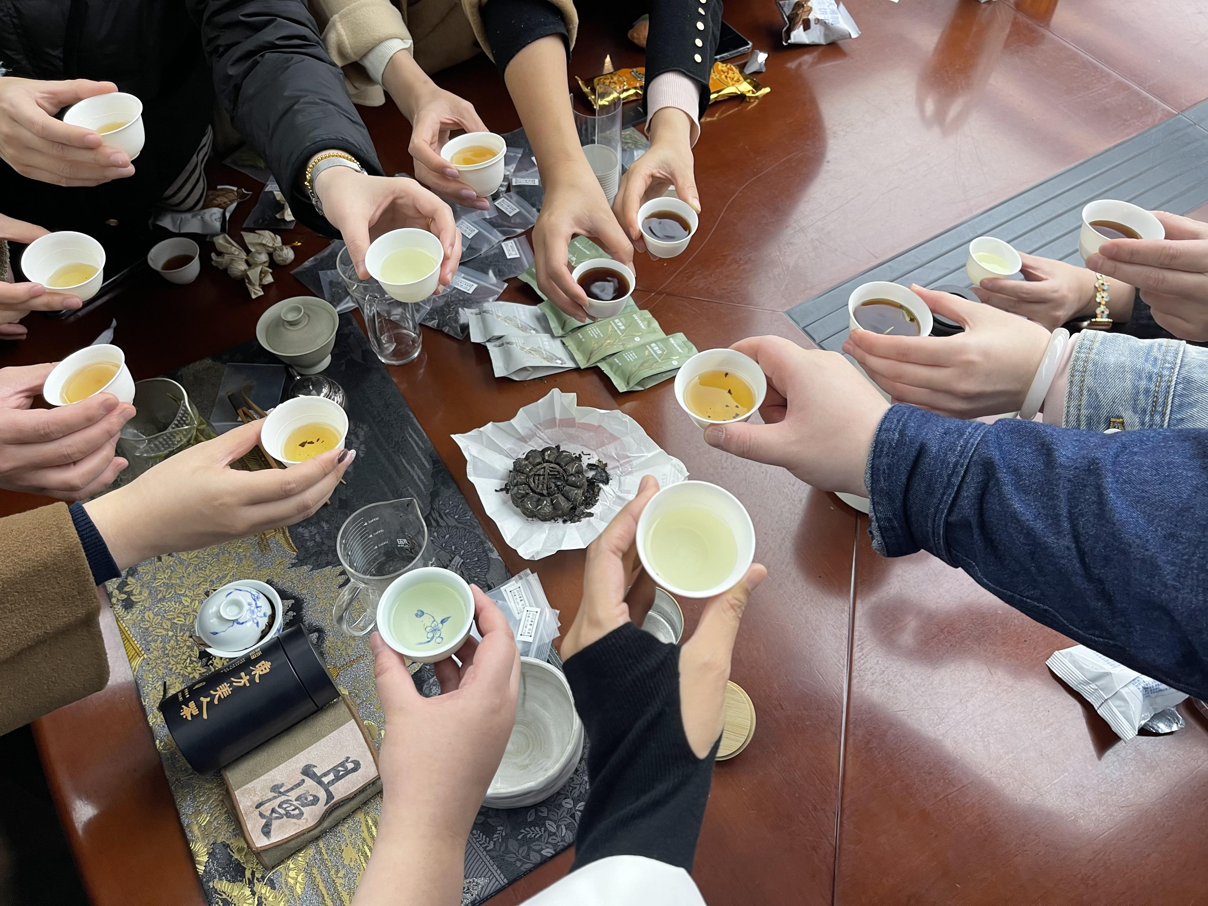 随着热水注入,茶香渐渐弥漫在活动空间。党员同志们依次品饮了不同茶类,直观地感受着绿茶之鲜爽、乌龙茶之馥郁,在观色、闻香、品味的过程中,大家静心感受每一片茶叶所承载的自然馈赠与匠心工艺,现场气氛宁静而融洽,充分体现了“清静和美”的活动主题。