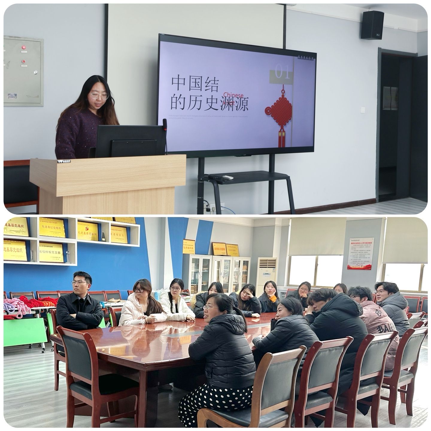 在实践制作环节,支部党员们分为小组,热情高涨地投入到中国结包挂与门挂的创作中。大家对照步骤说明,穿针引线、打结缠绕,或相互请教编织手法,或分享彼此的设计灵感。李赵法书记与李玉杰老师也融入其中,与党员们一同动手制作,并不时询问大家的学习心得。李赵法书记指出,传统文化是红色基因的重要载体,党员同志要在传承中创新,将文化自信转化为奋斗动力,以实际行动诠释新时代青年党员的责任与担当。经过近两小时的精心编织,一个个寓意吉祥的中国结包挂、门挂逐渐成型,鲜红的绳结交织出党员们对党的忠诚与对祖国的祝福。