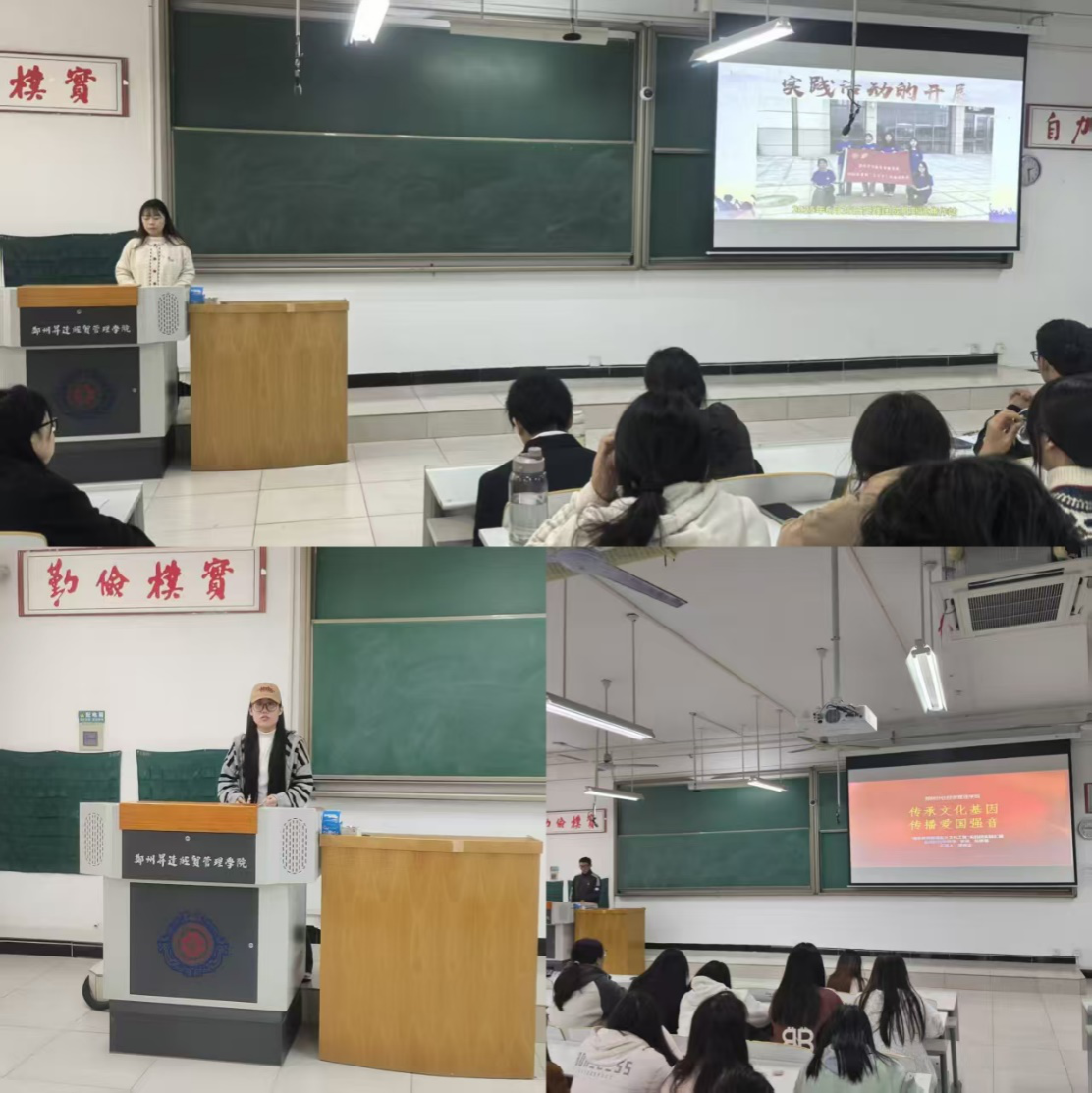 校级重点项目“青春筑梦乡村,护佑青少成长”--大学生服务乡村“五个振兴”的探索团队代表李依晨、校级专项项目声浪新生代“推普助力乡村振兴”实践团代表杨圣羽、校级专项项目“传承传播爱国主义文化工程”实践团代表郑得志三位实践团队代表以图文并茂的形式向在场同学们展示了各团队在项目策划、问题解决、协作沟通等方面的收获与挑战,充分体现了团队合作的力量,弘扬了社会实践中奉献自我,服务社会的精神。