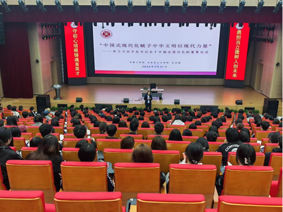 在随后的团课第一讲中,毛宝铭教授以“中国式现代化赋予中华文明以现代力量——学习习近平总书记关于中国式现代化的重要论述”为主题,为全体学员作专题辅导。