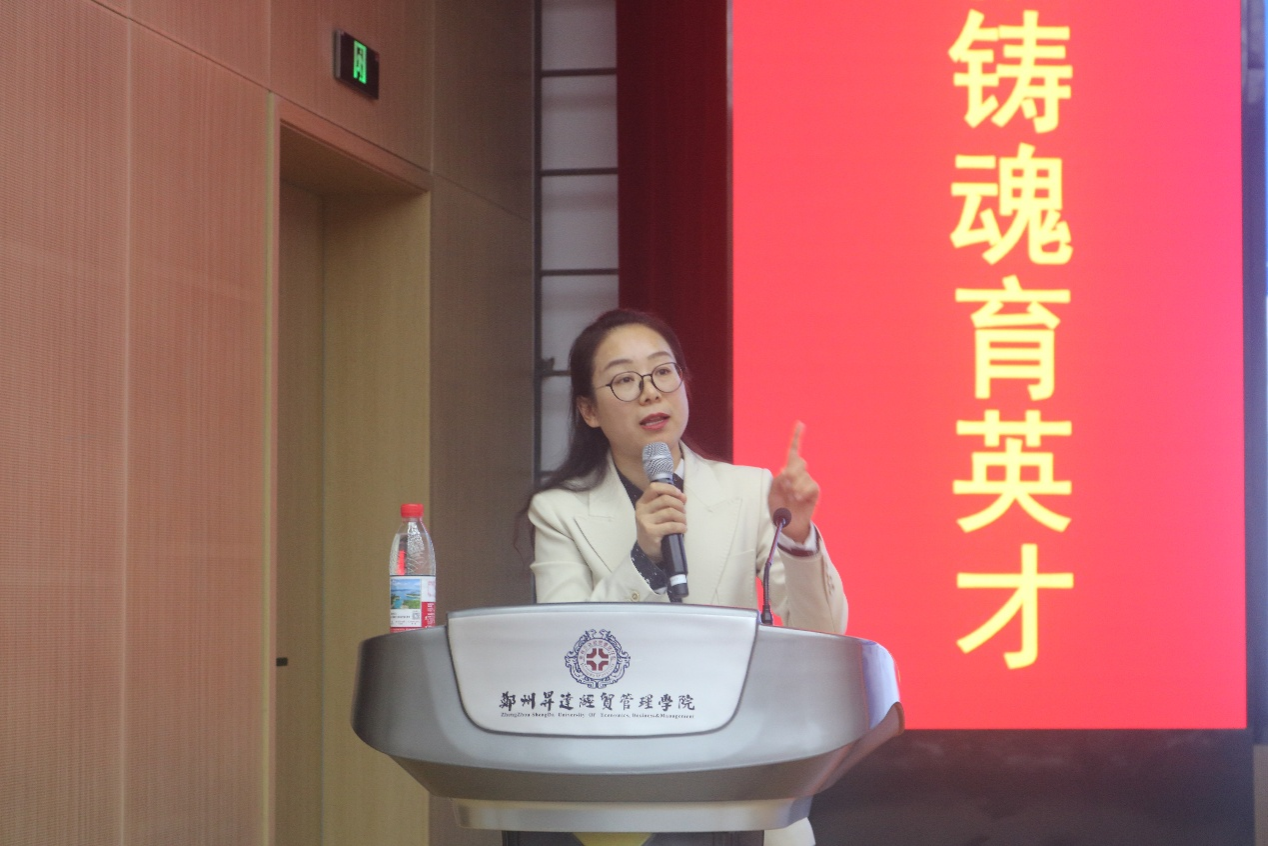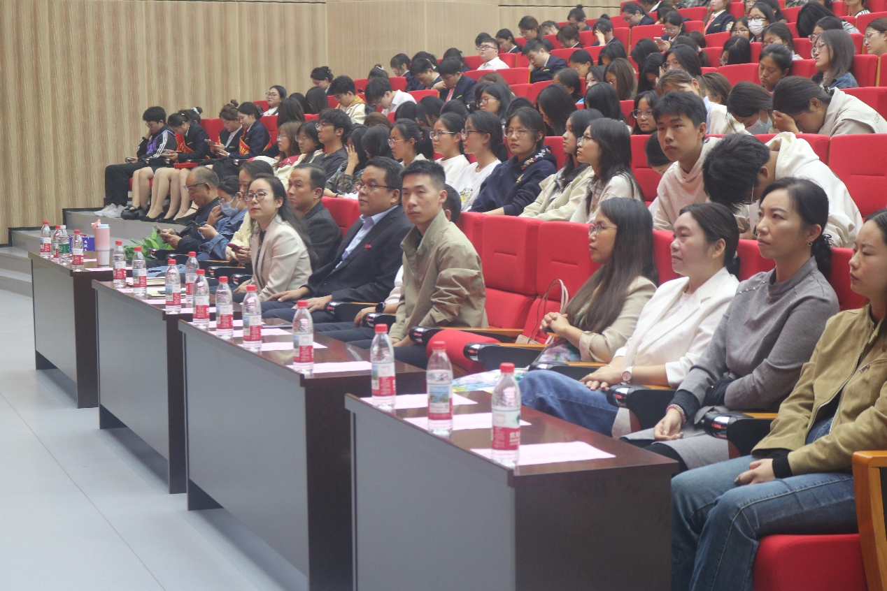 院长朱影影在热烈的掌声中发表重要讲话,她不仅为新生们解惑答疑,还详细介绍学院的发展历程、学科特色以及未来规划,让新生们对管理学院有更深入的了解。