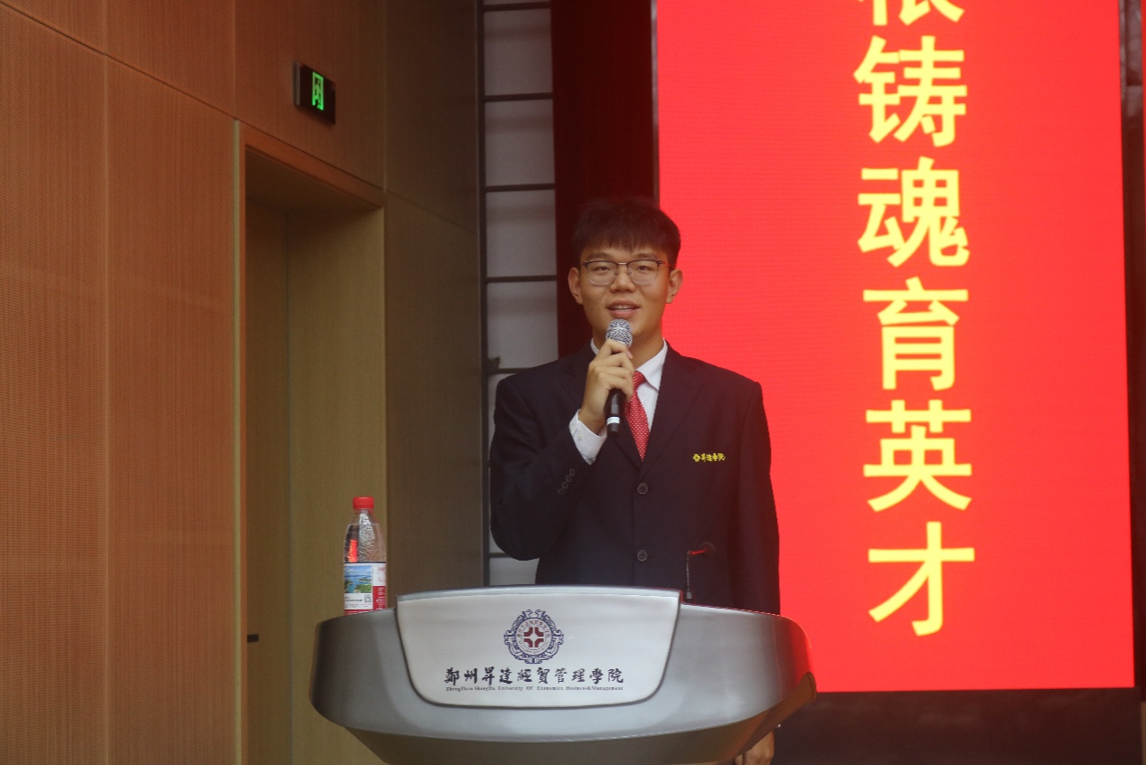 2025级工业工程2班新生代表闺涵用充满朝气的发言,表达对大学生活的期待与决心。他表示将带领新同学们尽快适应环境,以自律和勤勉为动力,在管理学院舞台上绽放青春风采。
