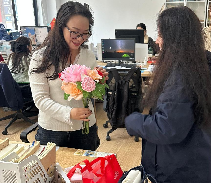 活动尾声,团支书代表全班同学将亲手制作的玫瑰花束赠予辅导员,以此表达对辅导员日常悉心指导、用心关怀的感恩之情,简单的花束传递着师生间的真挚情谊,也为本次主题团日活动画上温暖句号。