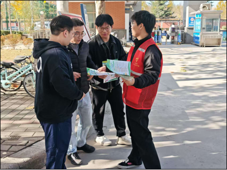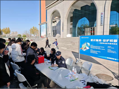 为加强校园安全教育,提升在校大学生对网络诈骗的认知水平,帮助学生了解常见诈骗手段及防范技巧,筑牢校园反诈防线。机电学院青年志愿者协会特邀请河南警察学院“重明净网”反诈社团与河南司法警官职业学院团委“藏蓝青春”志愿者协会于2025年11月29日进校园开展“慧识骗局·安护校园”校际联动反诈宣传活动。