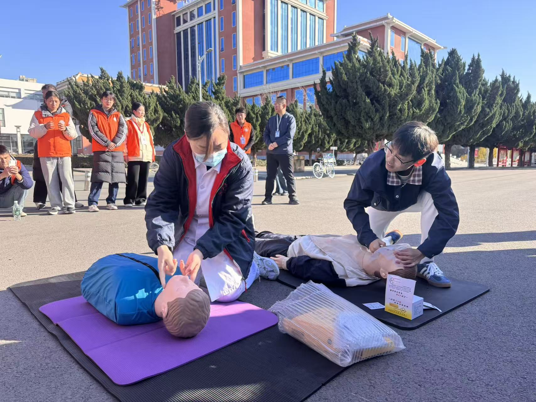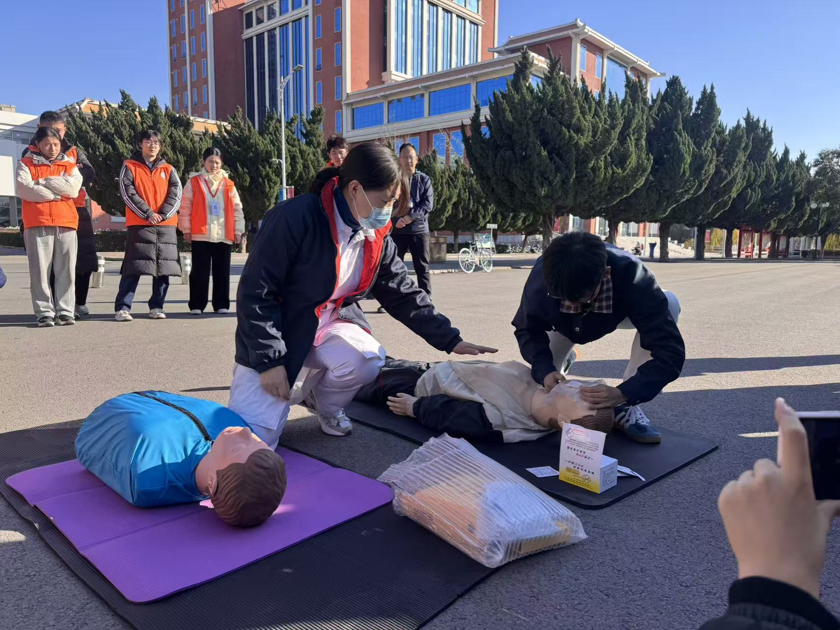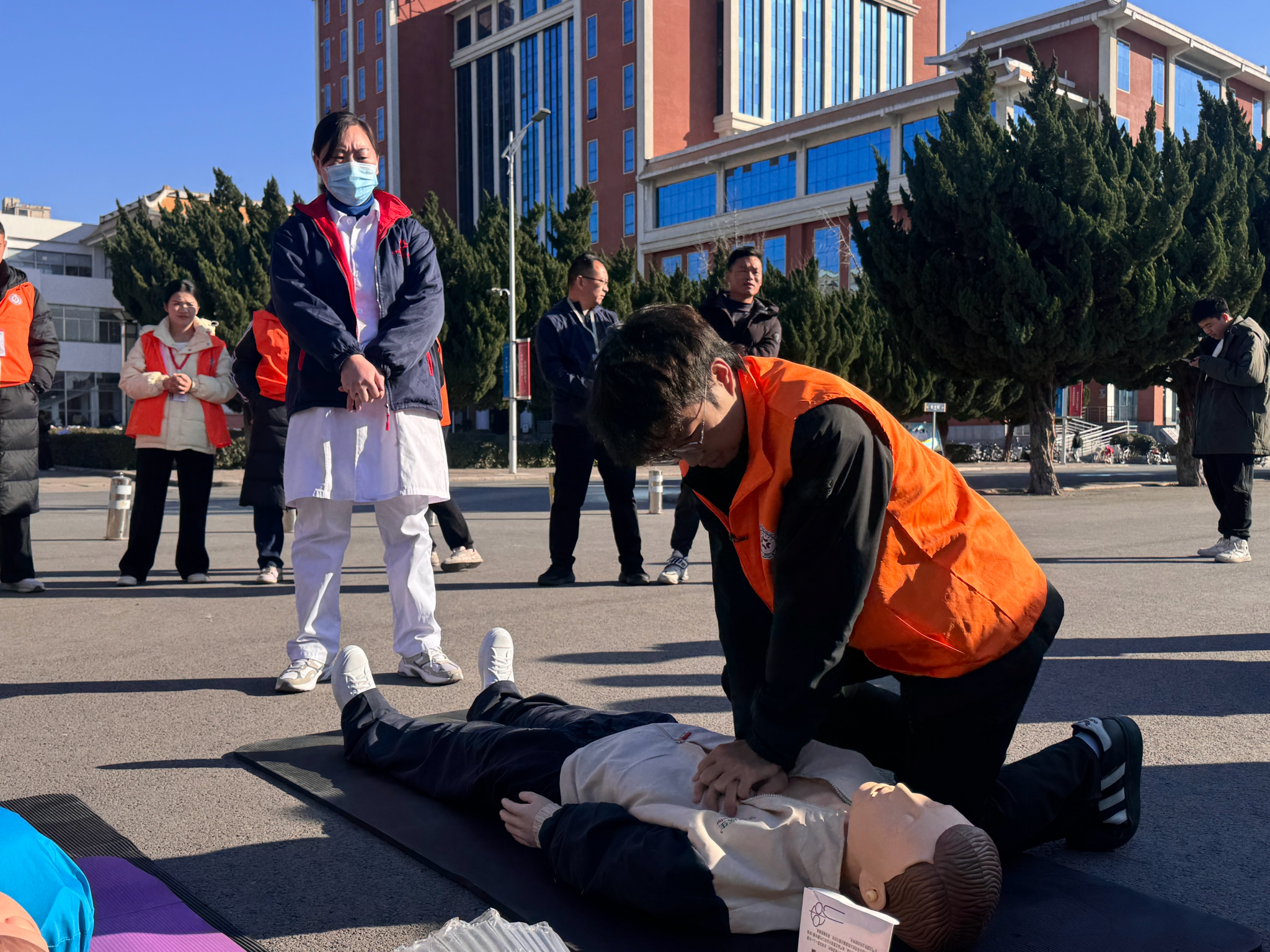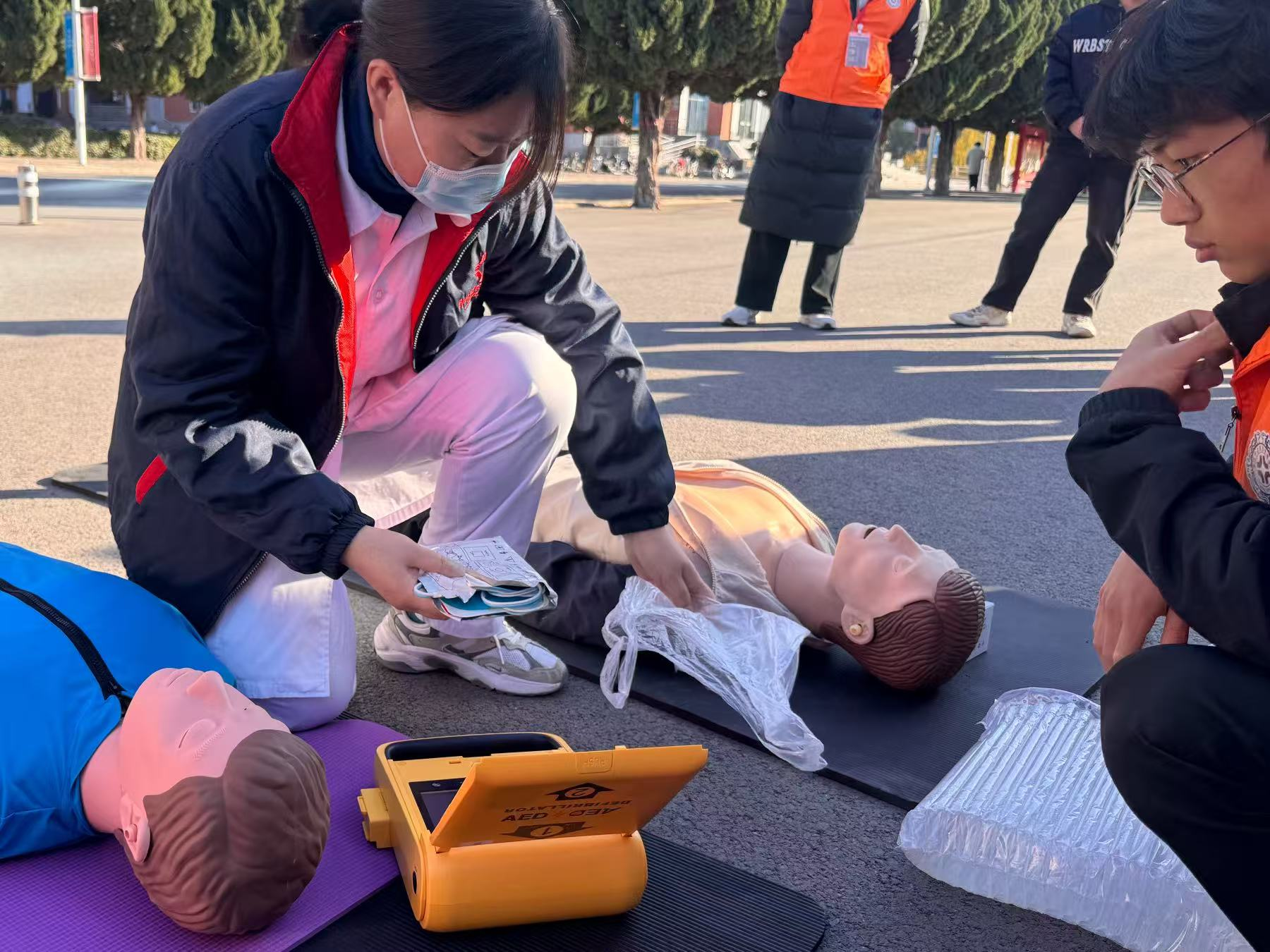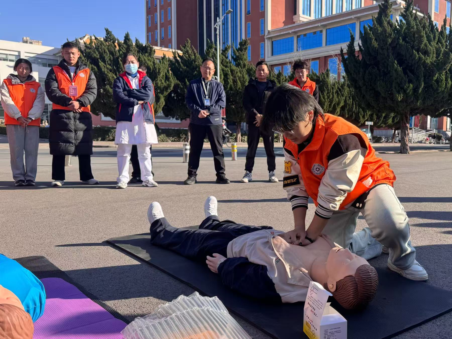 培训环节中,授课讲师围绕通用急救标准,通过理论讲解、案例分析、实操演练等多种形式,系统讲解了心肺复苏(CPR)、自动体外除颤器(AED)使用、气道异物梗阻急救等核心内容。针对志愿服务中可能遇到的多元场景,老师特别补充了急救指令等实用知识,帮助学生应对不同场景的急救需求。