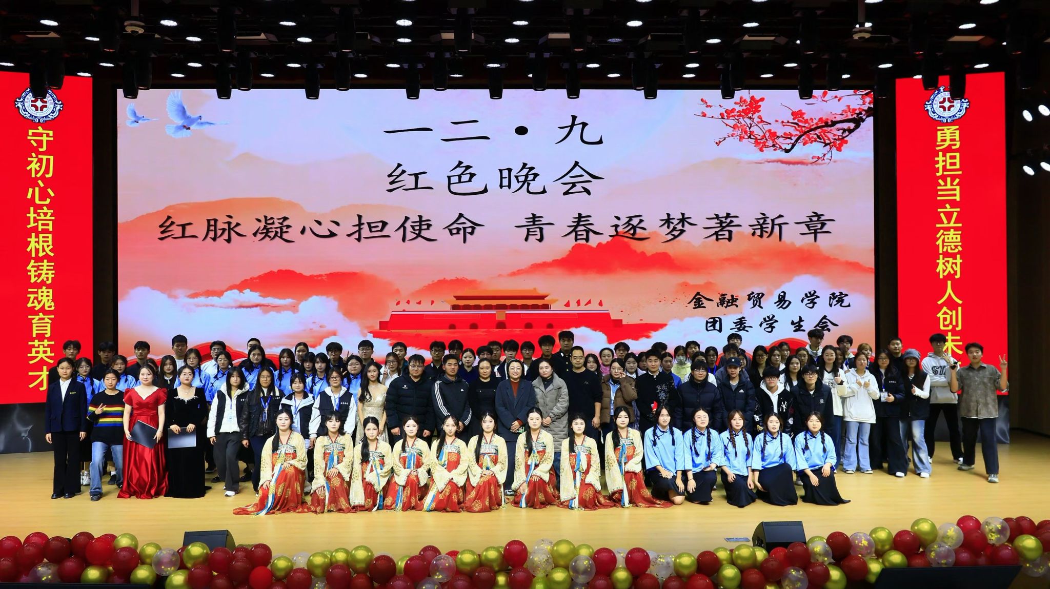 2025年12月9日晚18:30,由金融贸易学院团委举办的一二・九红色晚会,在新图书馆三楼三号报告厅举办。金融贸易学院党委副书记王娟、团委副书记曾婧婧及25级辅导员老师徐依帆、刘宗明出席本次晚会。