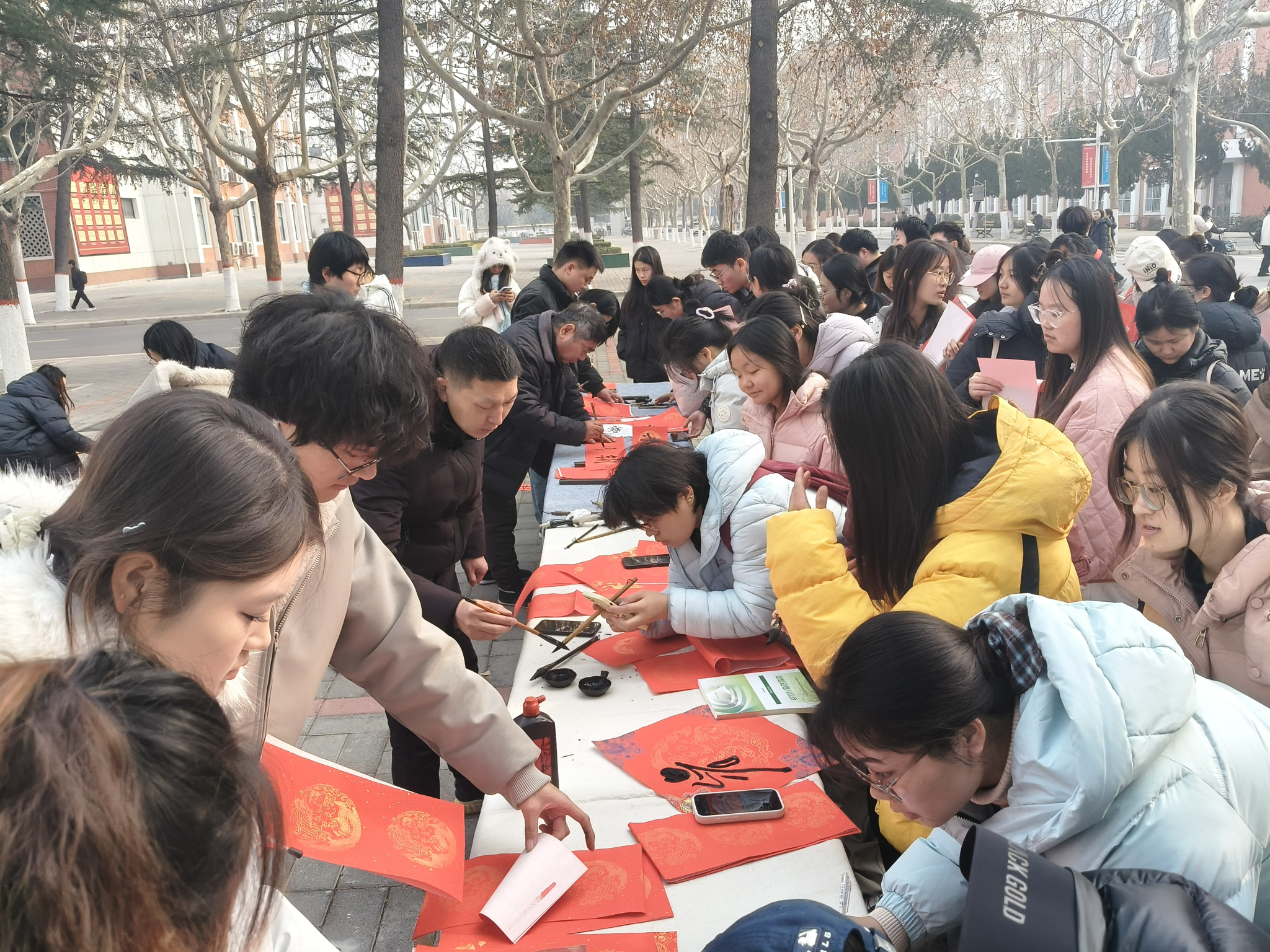 昇光书画社于2025年12 月30 日在教学2号楼前成功举办“墨韵迎新春,春联送福至”主题活动。本次活动由郑州升达经贸管理学院校团委社团管理部主办,昇光书画社承办,旨在营造温馨祥和的新春氛围,传承中华优秀传统文化。活动以写春联、送福字为核心,邀请专业导师与同学们携手挥毫,用笔墨传递新春祝福,吸引了众多师生踊跃参与,现场暖意融融、墨香四溢。