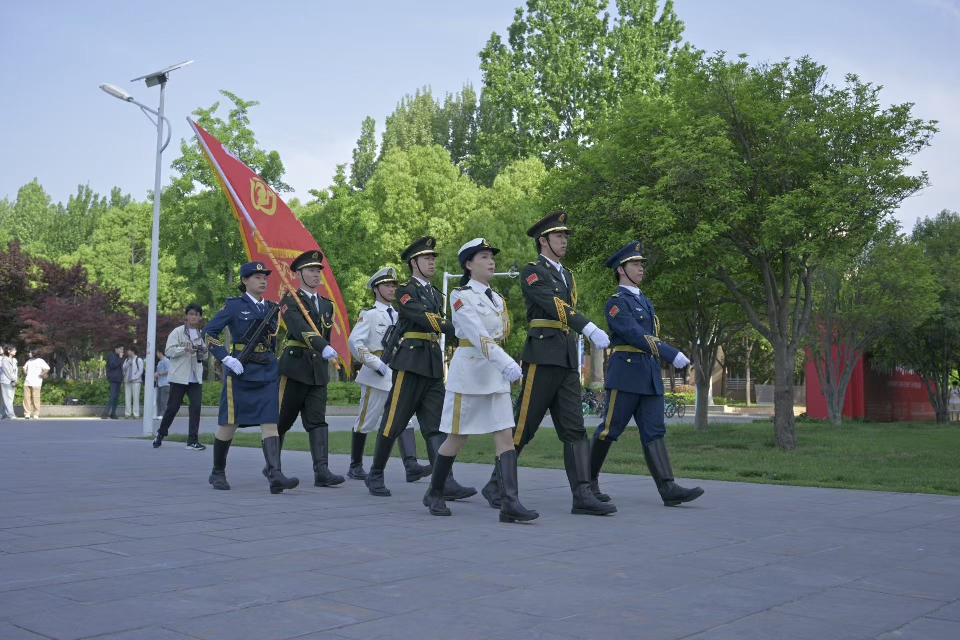 为深化爱国主义教育,加强校际国旗班建设经验互鉴,提升队员专业素养与作风纪律,2026年4月19日,我校国旗班带训队长范文豪、黄怡鸣带领第31届国旗班预备队员,前往中原工学院弘德广场,观摩该校25级国旗护卫队入队仪式,并开展国旗文化交流学习活动。