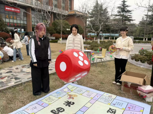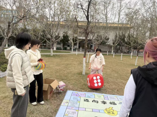 为进一步加强大学生心理健康教育,丰富校园文化生活,引导同学们在快节奏的学习生活中关注自我、悦纳自我,学会以积极心态释放压力、收获成长,2026年3月26日下午,由校团委社团管理部主办、心桥心理社团承办的“心灵奇遇,骰子闯关”心理骰子派对活动在学苑会馆旁开阔舒展的草地上顺利举行。春日暖阳下,草坪焕然一新,活动吸引了许多同学们驻足参与,现场人头攒动,欢声笑语此起彼伏,营造出一派轻松热烈的青春氛围。