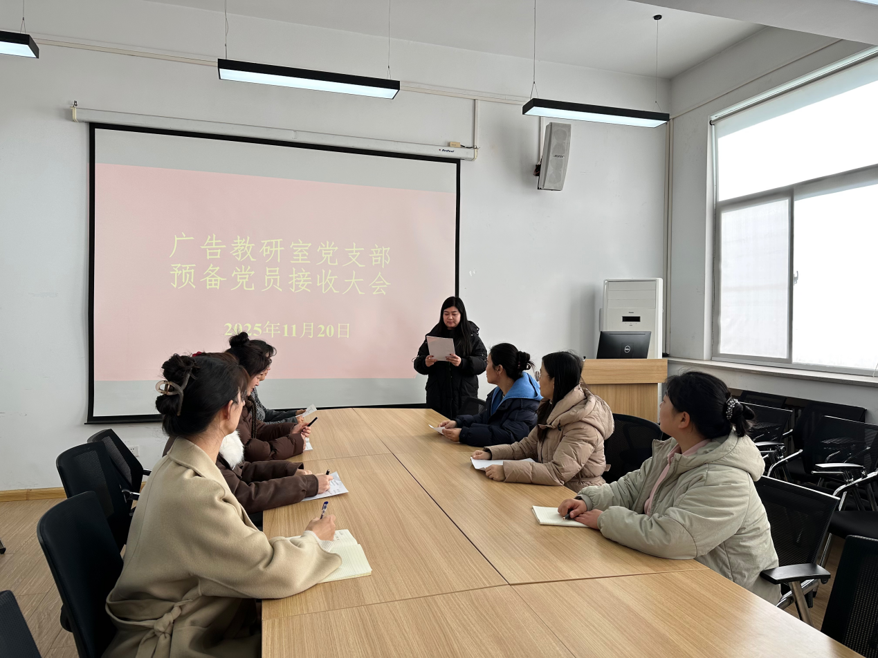 为持续强化支部组织建设,凝聚奋进力量,商学院广告教研室党支部根据党员发展工作安排,于11月20日中午12:00在2号教学楼315会议室召开预备党员接收大会。支部全体党员参加,会议由党支部书记张冰晶同志主持。