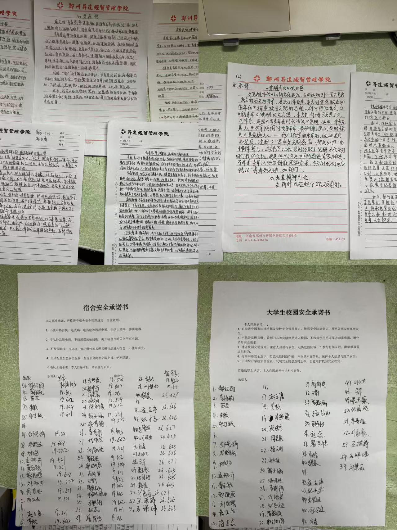 随后,活动转入实践环节。团支部发布《宿舍安全隐患排查表》,各宿舍对照清单开展自查自纠。同学们纷纷行动起来:有的蹲在床边仔细检查插线板是否缠绕床架,有的逐一拔下长期未拔的手机充电器。在一间宿舍的角落里,几位室友共同清理出闲置的打火机,大家意识到易燃易爆物品的风险,主动丢弃并约定互相监督。自查结束后,全班同学逐一签订《宿舍安全承诺书》,郑重写下自己的名字,承诺不使用违规电器、不私拉电线、保持卫生整洁。班长带头在承诺书末尾补充了一句:“安全不是签个字,是每天出门前拔掉插头。”